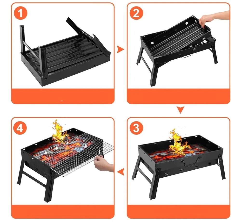 Fabriqué en métal résistant à la chaleur et doté de pieds stables, il assure une cuisson sûre et durable. Les grilles en acier permettent une excellente distribution de la chaleur, garantissant que vos aliments sont parfaitement cuits à chaque fois. Les poignées latérales facilitent le déplacement du barbecue, même lorsqu’il est encore chaud, grâce à leur conception isolante.