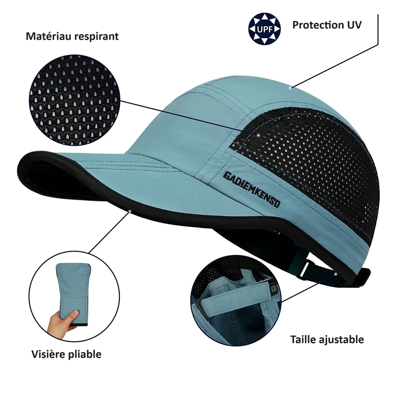La casquette est équipée d’une visière pliable qui vous offre une protection supplémentaire contre les rayons UV nocifs du soleil. Que vous soyez en train de grimper en montagne, de marcher à travers les sentiers boisés ou de camper au bord d’un lac, cette casquette vous protégera des rayons du soleil tout en vous offrant un confort optimal.