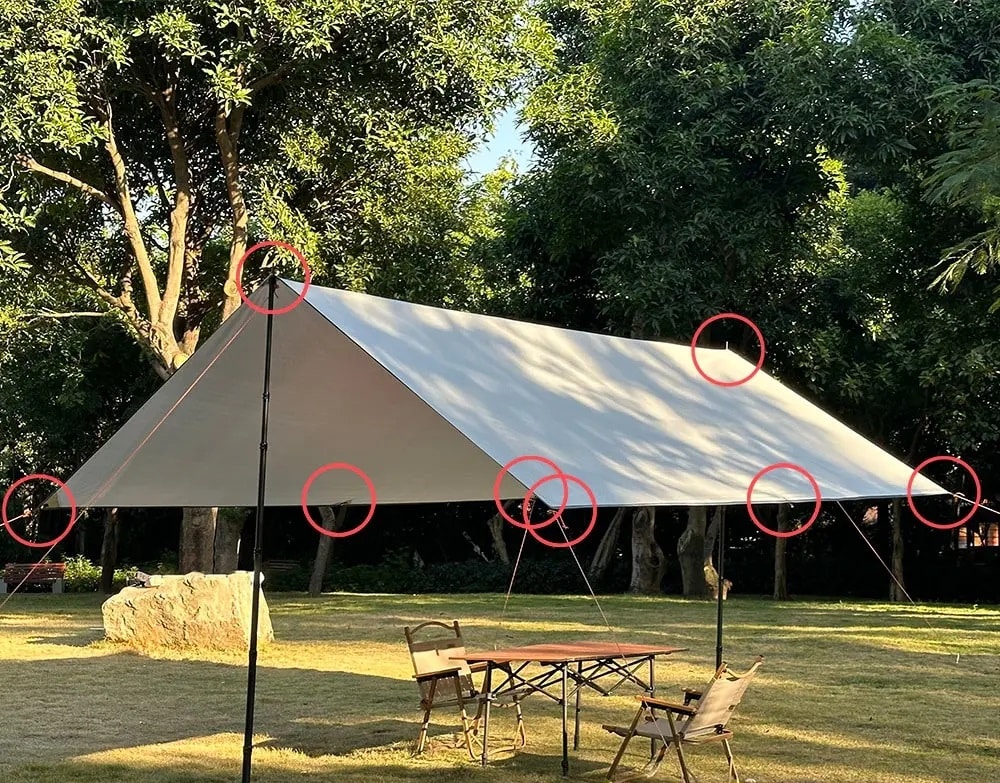 Le design du Tarp de camping est à la fois pratique et réfléchi, avec des bords renforcés pour une résistance accrue, tout comme les œillets renforcés eux aussi et qui offrent des points d’attache solides.